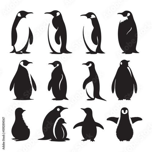 © Shamim Akhtar, Obraz premium Set of penguin silhouette on white background