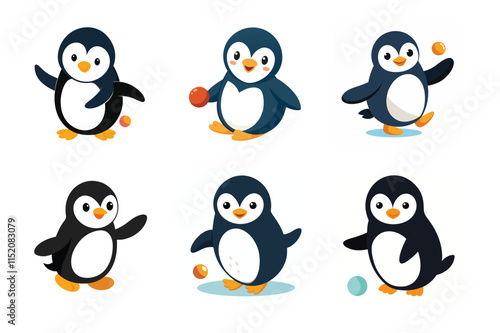 © Nazma, Naklejka premium Set of penguin vector illustrations on white background