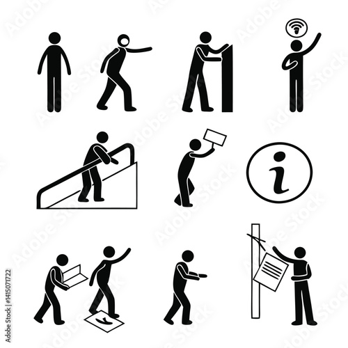 © Rejowan, Obraz premium Set of people icons in black and white man and woman. Vector illustration of group of stylized people in black and white.
