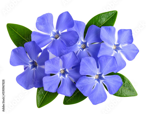 © Wayes, Fototapeta premium Set of Periwinkle Flower with Five Petals, Front View, Isolated on Transparent Background.