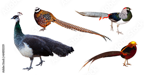 © JackF, Naklejka premium Set of pheasant family birds. Isolated over white