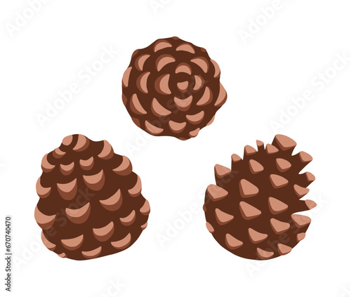 © Oxy D, Fototapeta premium Set of pine cone. Hand-drawn colored flat vector illustration isolated on white background.