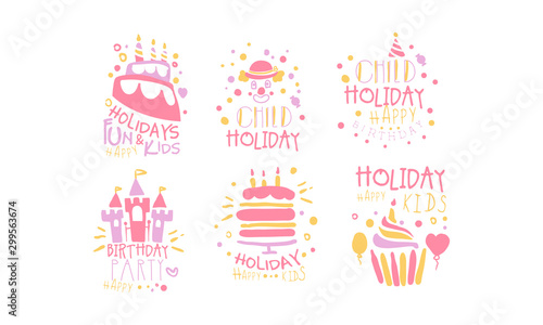 © topvectors, Fototapeta premium Set of pink outlines and inscriptions for the birthday. Vector illustration.