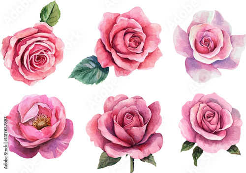 © asadul, Fototapeta premium set of pink roses isolated