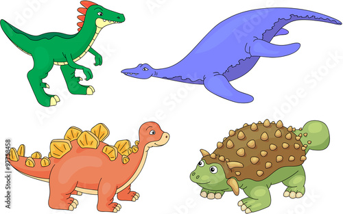 Obraz premium Set of pliosaur, stegosaurus, ankylosaurus and guanlong