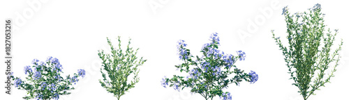 © Viktoria, Fototapeta premium Set of Plumbago auriculata and Romneya coulteri flowering frontal isolated png on a transparent background perfectly cutout high resolution