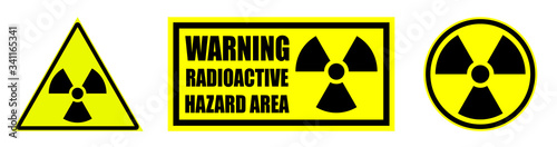 © RNko, Obraz premium Set of radioactive hazard signs on a yellow background. Isolated vector