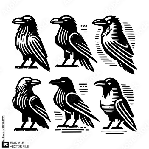 © Niken, Naklejka premium set of raven Clip Art Black and White Illustrations Graphic Design Elements Vector Silhouette