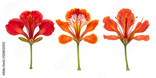 Obraz premium Set of Real Poinciana Tree Flowers on White Background for Bold Floral Design, PNG Transparent