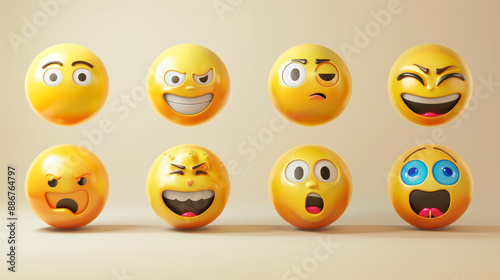 © Cedric, Fototapeta premium set of realistic 3d emojis in various points of view