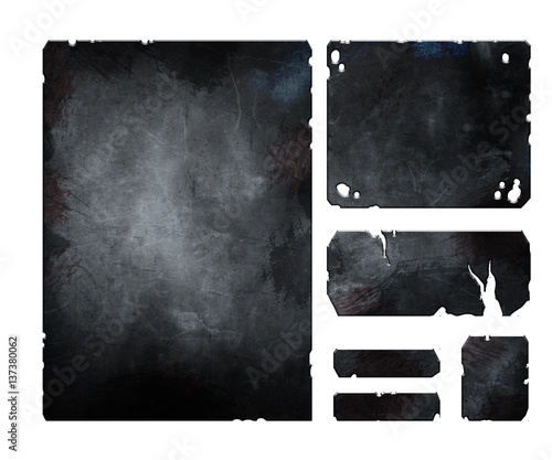 Obraz premium Set of realistic damaged, rusted metal user fantasy game interface elements,...