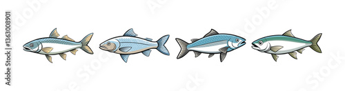 © Asif Al Akram, Obraz premium Set of Realistic Lake Whitefish Colorful Illustration