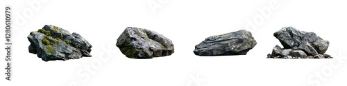 © PNG SET GUY, Naklejka premium Set of Realistic Rocky Stones Isolated on Transparent Background