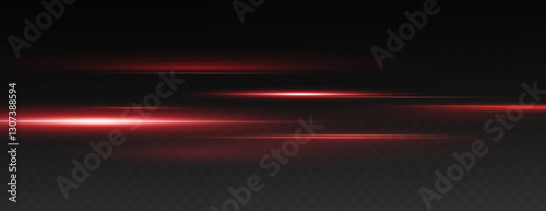 © Iryna, Obraz premium Set of realistic suns. Vector illustration of red color, abstract laser speed lines. Glare, horizontal light rays png. Glowing linear background.