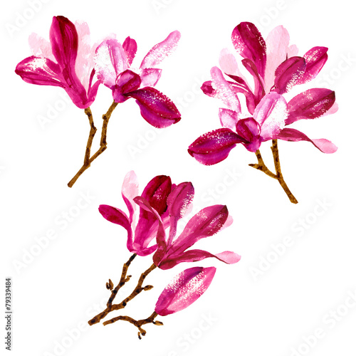 © jet, Fototapeta premium Set of red watercolor magnolia flowers