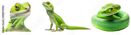 © Porechenskaya, Obraz premium Set of reptile on png background.