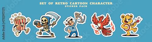 © Niken, Fototapeta premium Set of Retro Cartoon Characters Sticker Pack.