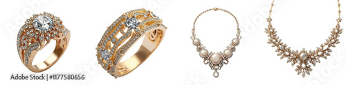 © ShahedurRahim, Obraz premium Set of 2 Rings and 2 Necklaces – Transparent PNG for Jewelry and Accessory Designs
