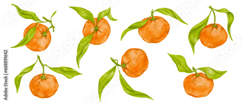 © Катерина Якубович, Obraz premium Set of ripe citrus fruits tangerine. Vector graphics.