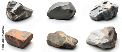 © Pawe, Naklejka premium Set of Rocks on White Background