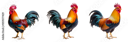 Fototapeta premium Set of rooster with colorful plumage isolated on transparent background (4)