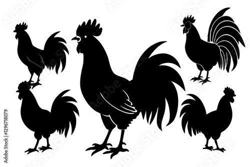 © tanvir, Fototapeta premium set of Roosters Silhouette vector illustration