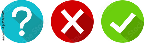© katet, Obraz premium Set of round marks, cross, question mark, checkmark icons, buttons with shadow on white background.