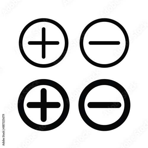 © BhandariProductions, Obraz premium Set of round plus and minus icons with different thicknesses. vector illustration