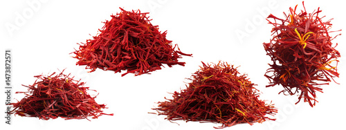 © Yhs City, Naklejka premium Set of saffron spice piles in various colors, isolated on transparent background