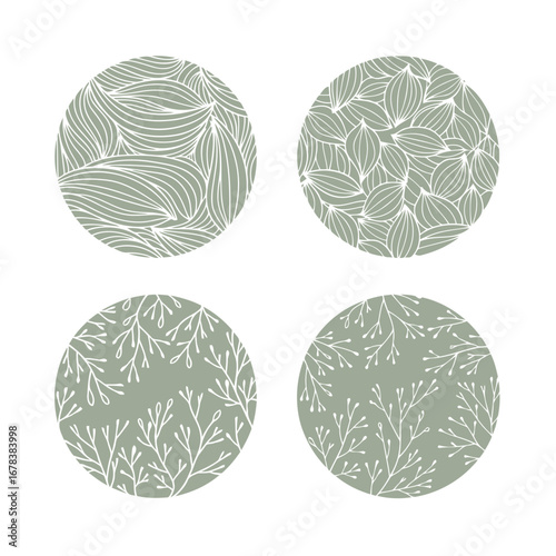 Obraz premium Set of 4 sage green leaf pattern circles vector