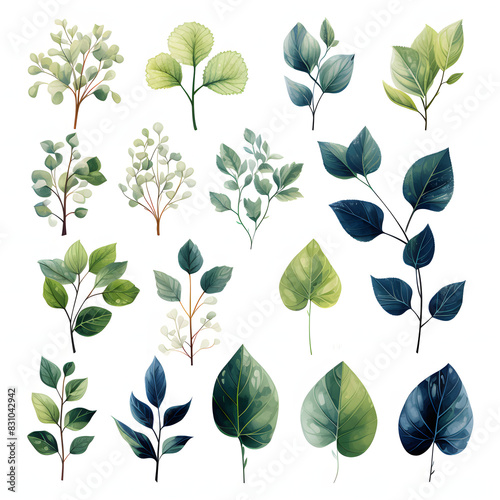 © Jareerut, Obraz premium set of Salal leaves, plants, leaves and flowers. illustrations of beautiful realistic flowers for background, pattern or wedding invitations