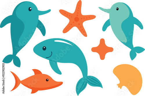 © Aliyah, Fototapeta premium set of sea animals