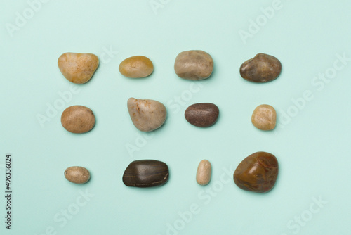 © Liami, Obraz premium Set of sea stones on color background, top view