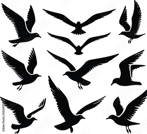 © Shawon, Obraz premium Set of seagull silhouette vectors