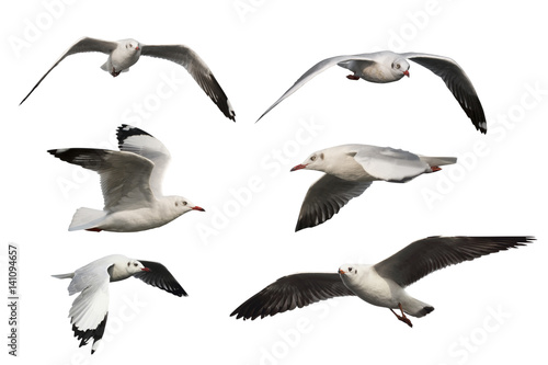 © nuruddean, Obraz premium set of seagulls isolated on white background.