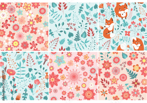 © Yuliia, Fototapeta premium Set of seamless flower patterns vector design for fashion, fabric, kids, wallpaper and all prints. Cute patterns in small flowers. Small spring, colorful flowers.