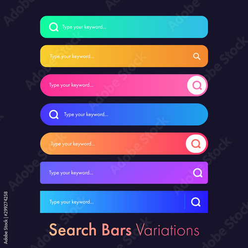 Fototapeta premium Set of 7 Search Bar Inputs on dark background