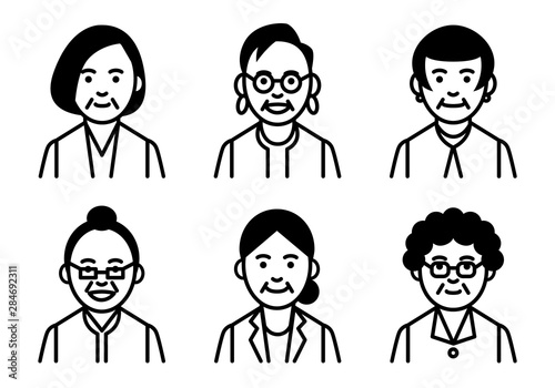 © efuroku, Naklejka premium Set of senior women upper body on white background. Vector illustration.