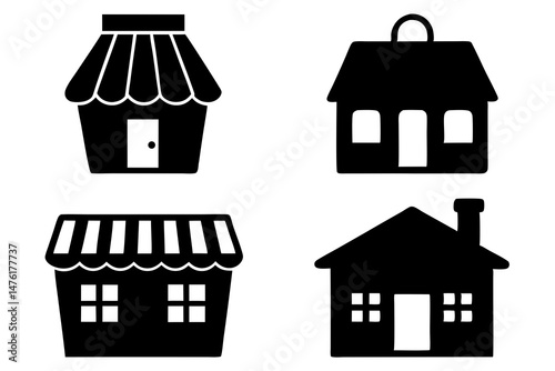 © tanvir, Fototapeta premium set of Shop silhouette vector illustration