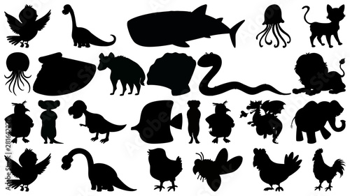 Naklejka premium Set of sihouette isolated objects theme - animals