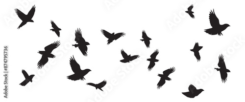 © shopone, Naklejka premium Set of silhouette flying bird white background