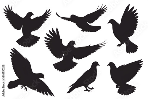 © NadeAnamta, Obraz premium set of silhouette of pigeons
