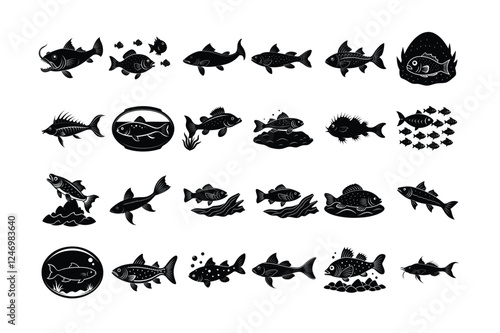 Naklejka premium set of 24 Silhouette vector Collection of Fish