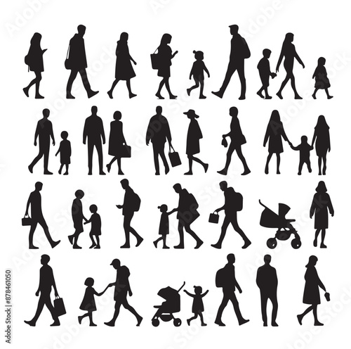© MSTMIM, Fototapeta premium Set of Silhouette Walking People and Children. Illustration Vector