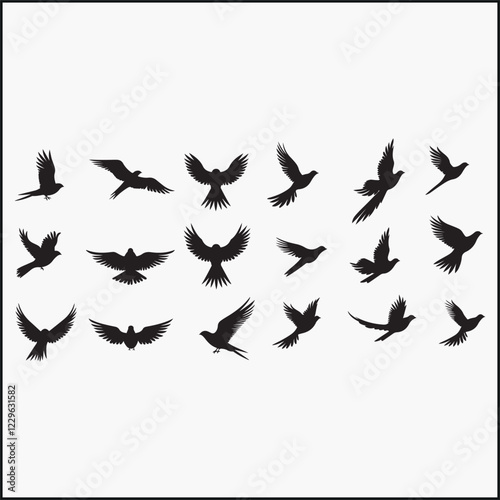 © 7COLORSbd, Naklejka premium Set of silhouettes of flying birds