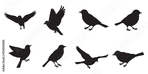 Fototapeta premium Set of silhouettes of flying birds in a flat style on a white background. Elegant vector bird logo.