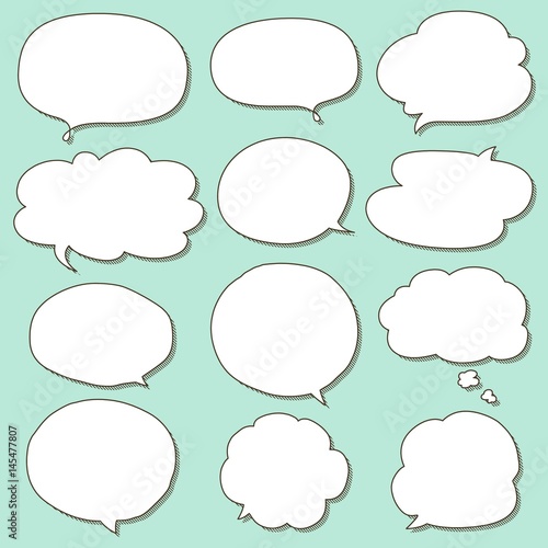 © tanaya, Fototapeta premium Set of Simple Hand Drawn Speech and Thought Bubbles Doodle