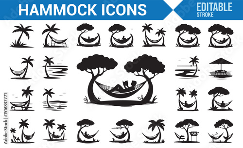 Fototapeta premium Set of Simple Line Icons for Hammocks, Palms, and Relaxation.