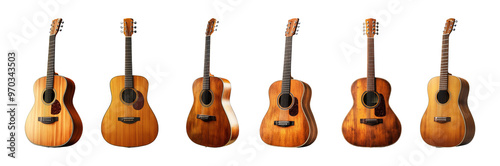 Obraz premium Set of Six Classical Acoustic Guitars Isolated on Transparent Background