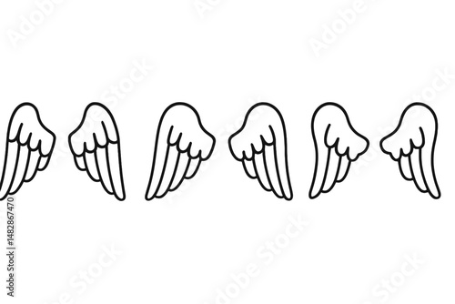 Fototapeta premium Set of six simple wing illustrations on a white background, showcasing...